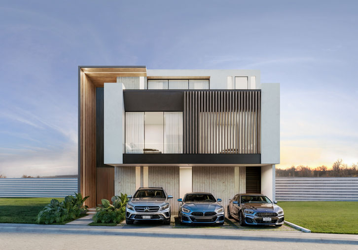 Limburgo 11 se presenta con una presencia arquitectónica imponente y contemporánea, definida por un juego preciso de volúmenes puros, líneas limpias y contrastes materiales. La composición destaca por su elegancia contenida, donde el concreto aparente, la madera y una viga en I simulada, dialogan con planos de cristal templado que aportan transparencia y profundidad visual.